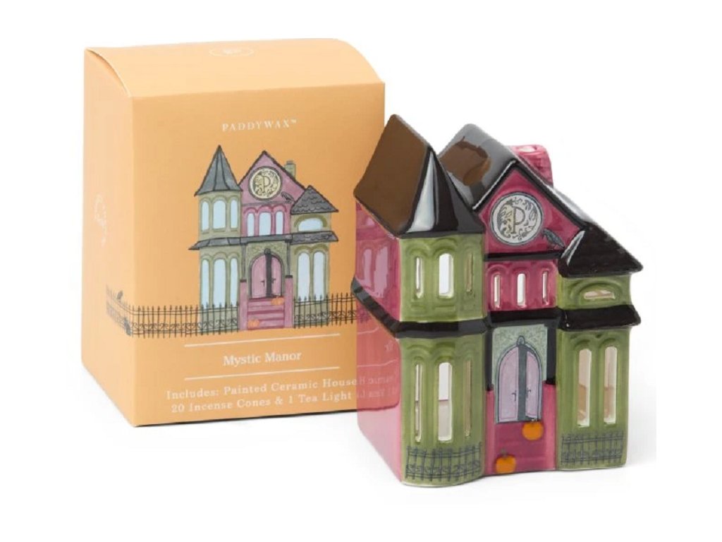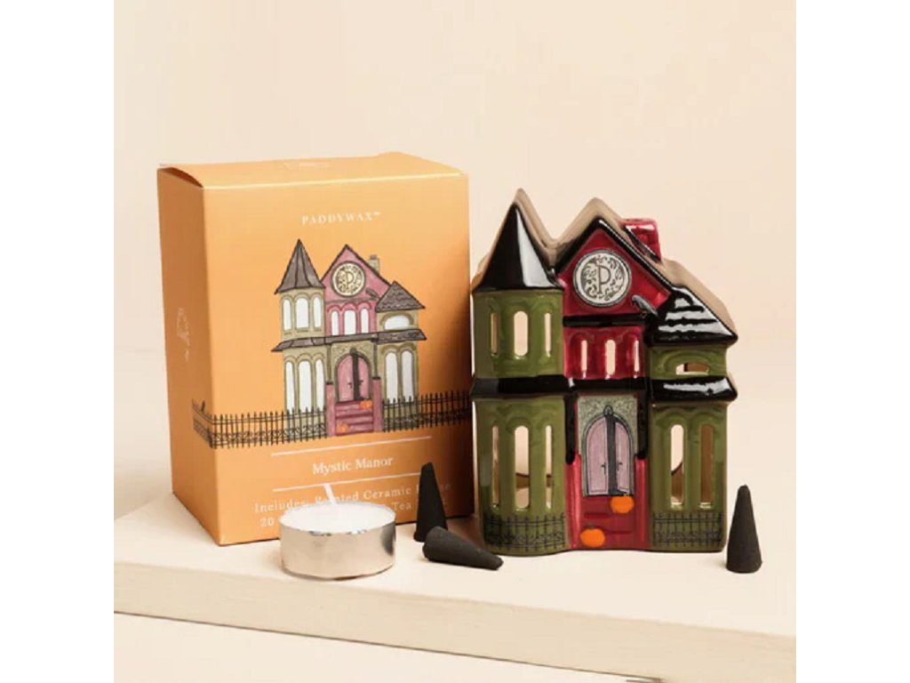 PADDYWAX - keramický domeček MYSTIC MANOR + 20 kadidlových kuželů PALO SANTO a čajová svíčka