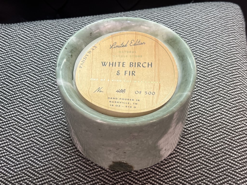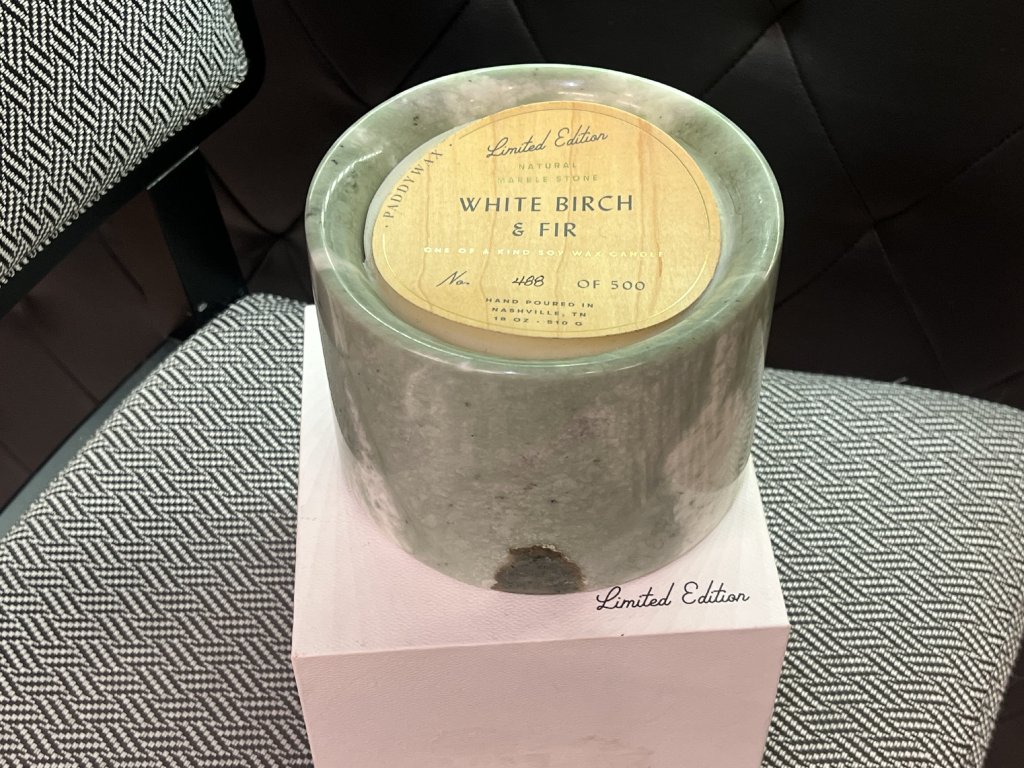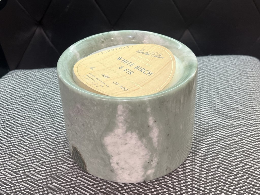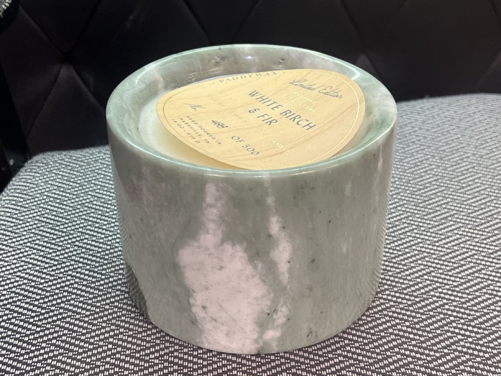 Paddywax Limited Edition Marble - vonná svíčka v mramorové misce WHITE BIRCH and FIR (Bílá bříza a prykyřice) 510 g