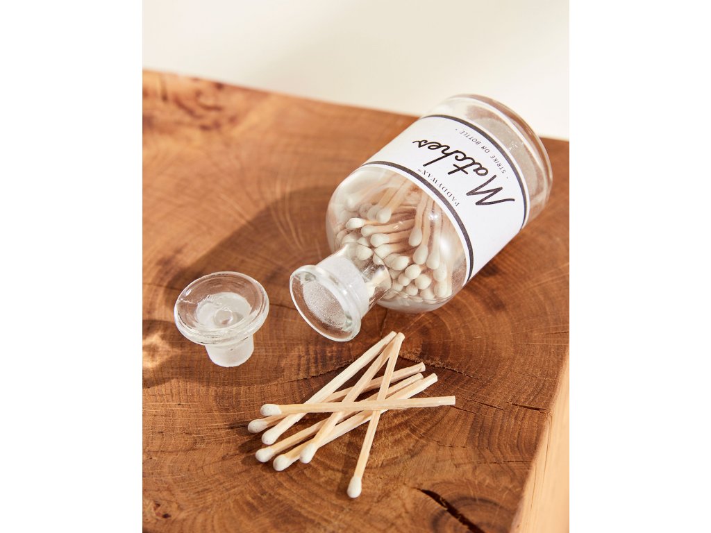 Nyní už nemusíte sáhnout po ošklivém zapalovači ve Vašem šuplíku, abyste si mohli zapálit Vaši oblíbenou svíčku. Tato luxusní skleněná láhev je plná 75 dřevěných zápalek s bílými hlavičkami, na zadní straně této esteticky příjemné lahve je škrtátko pro snadné zapálení.