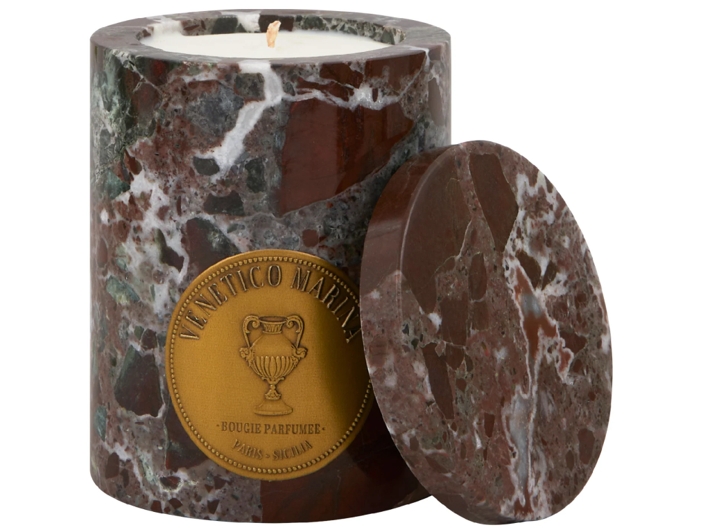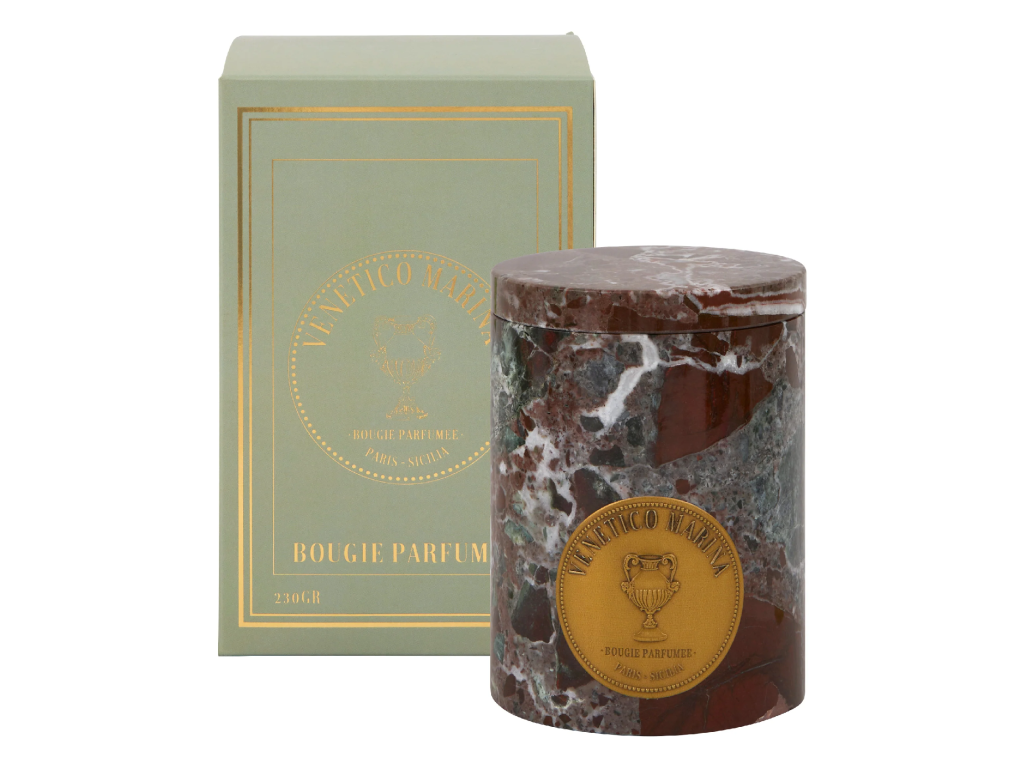 VENETICO MARINA - ručně vyrobená svíčka z červeného mramoru LIPARI (Bergamot, Cedr, Růže) 230 g