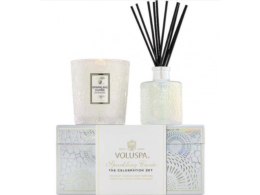 Voluspa - CELEBRATION SET - dárkový set svíčka + difuzér SPARKLING CUVÉE (Šumivé cuvée) 142 g + 100 ml