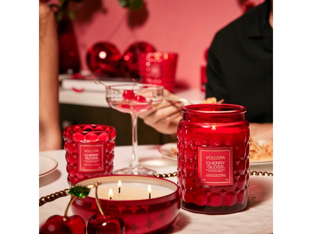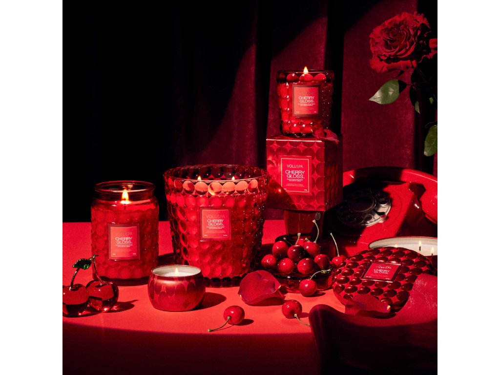 Jakmile vešla, celá místnost ztichla. Každým krokem se za ní šířila smyslnější vůně, která nabírala na intenzitě. Byla nenucená, ale přitom tak sebevědomá. Netoužila po pozornosti, nebyla marnivá, užívala si pouze sebe samu. Objevte novou smyslnou vůni Cherry Gloss, která je zosobněním ženskosti. Dokonalé spojení třešní s dotekem kouře a okvětních plátků růží, kombinovaných s exotickým guajakovým dřevem a letmým pohlazením kůže. Svíčka je lita do hravého flakonu syté červené barvy, jehož tvary evokují oblíbené ovoce, kterým byla vůně inspirována.