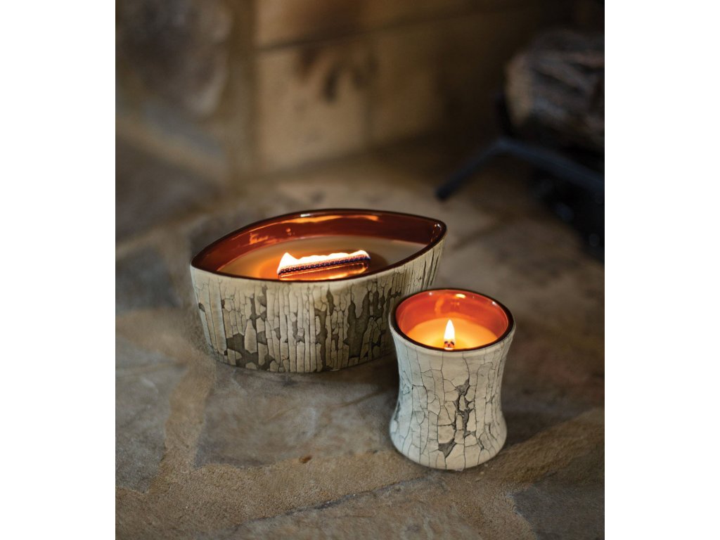 Vlajková vůně značky WoodWick a celosvětový bestseller. Charakteristická vůně přináší harmonii ambry, vetiveru a pižma, které nejlépe vystihují atmosféru útulného večera u hořícího krbu. Svíčka je lita do unikátní praskající keramiky, která je ručně vyráběná. Každý kus je tím pádem dekorativním originálem.