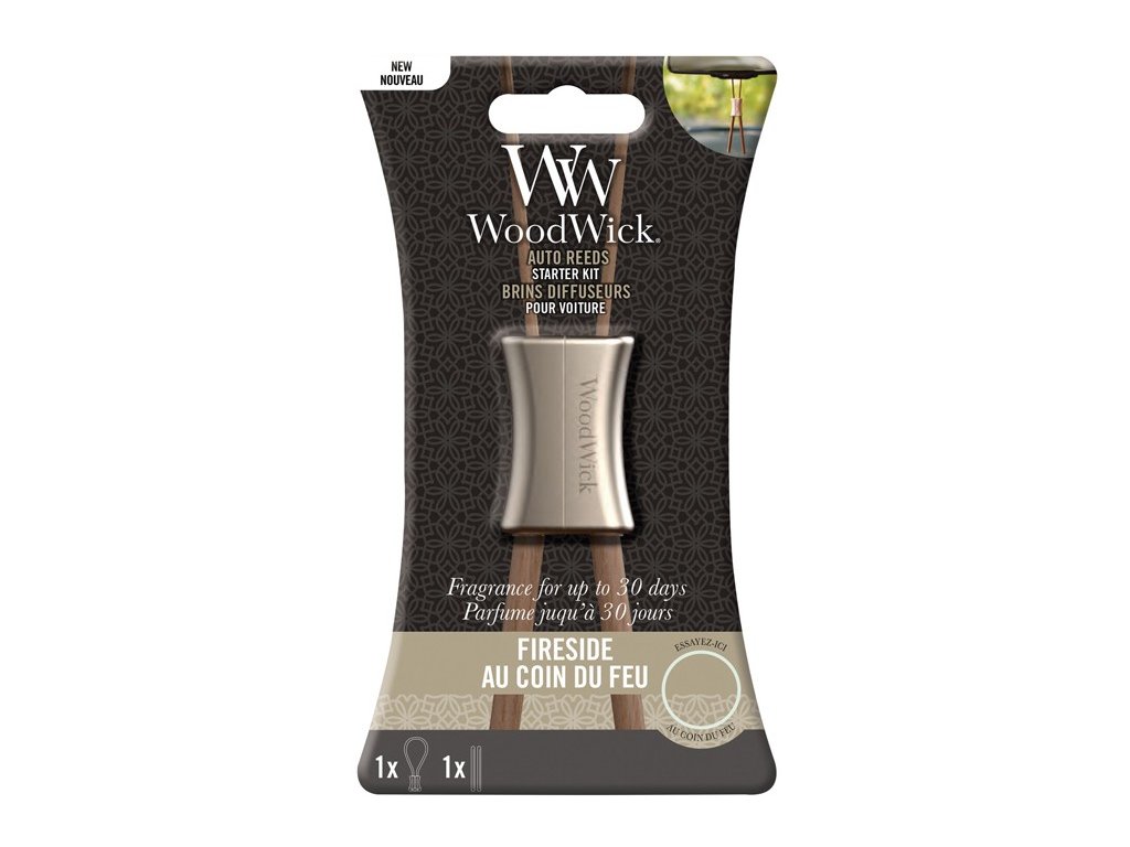 WoodWick - AUTO REEDS KIT - magnetický držák na tyčinky + vonné tyčinky do auta FIRESIDE (U krbu)