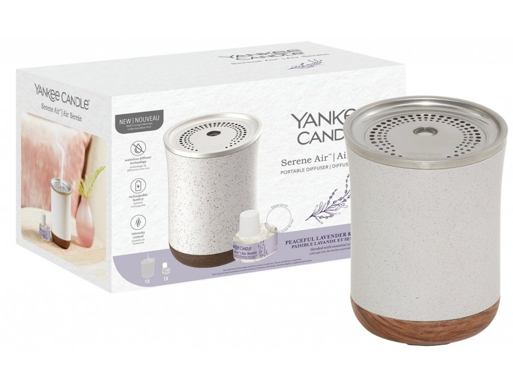 Yankee Candle - přenosný ultrasonický aroma difuzér SERENE AIR + Náplň Lavender & Sea Salt (Levandule a mořská sůl) 17 ml