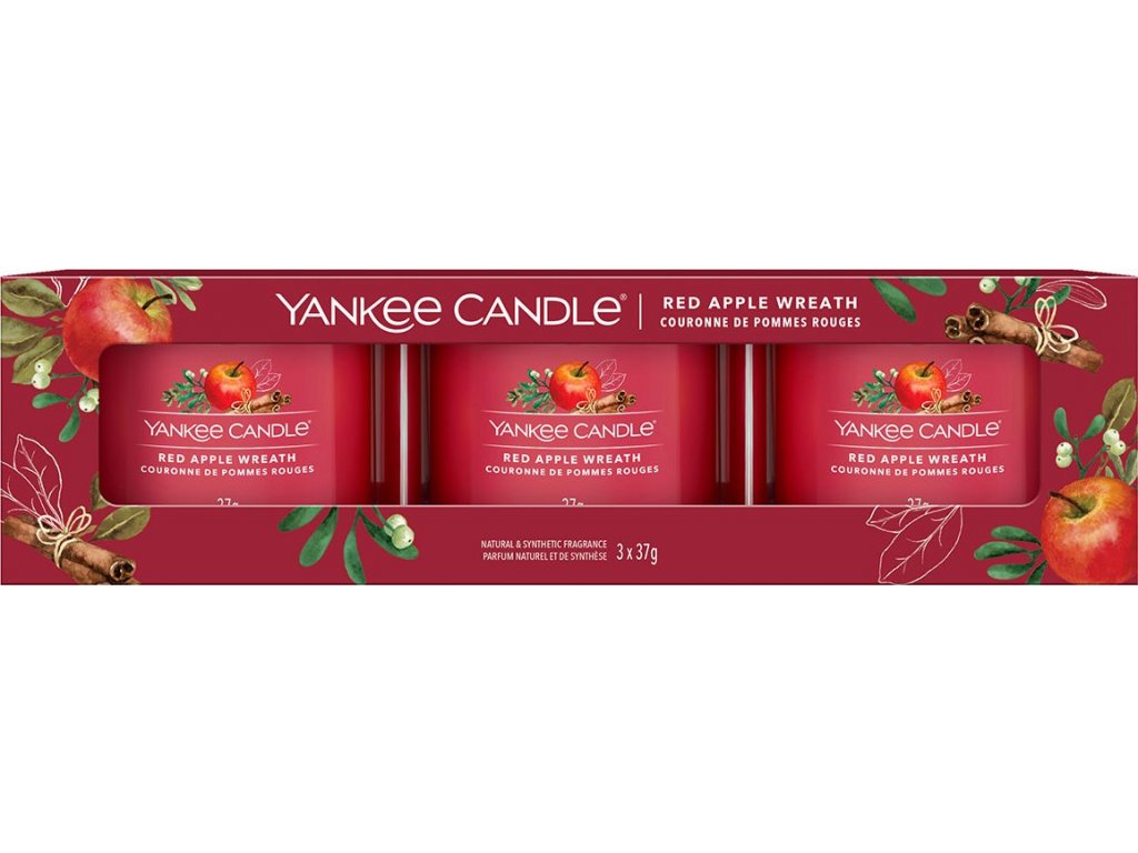 Yankee Candle - sada tří skleněných votivních svíček RED APPLE WREATH (Věnec z červených jablíček) 3 x 37 g