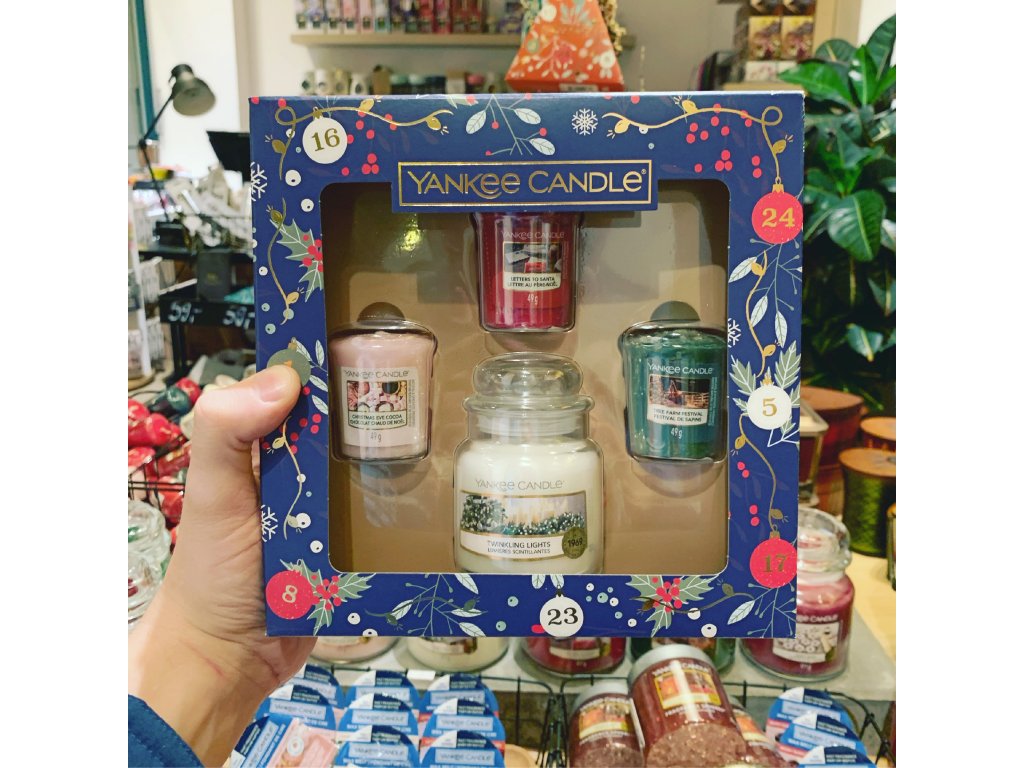 Půvabná dárková sada obsahuje 4 nové vánoční vůně, a to v provedení: Twinkling Lights malá svíčka Classic, která hoří až 30 hodin. Dále 3 votivní svíčky ve vůních: svěže zelené Tree Farm Festival, sváteční pralinkové Letters to Santa a něžné Christmas Eve Cocoa. Každá votivka hoří až 15 hodin a pálí se ve svícínku.